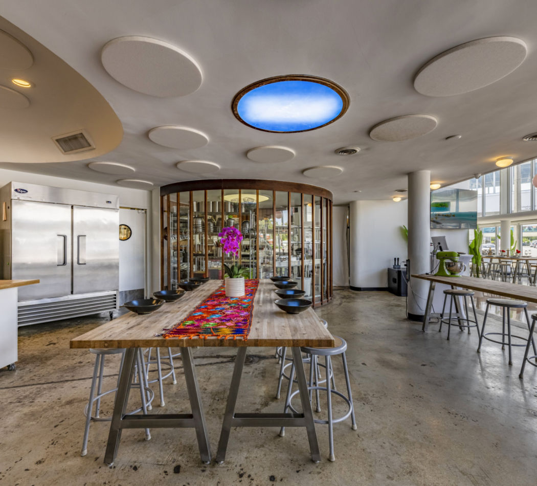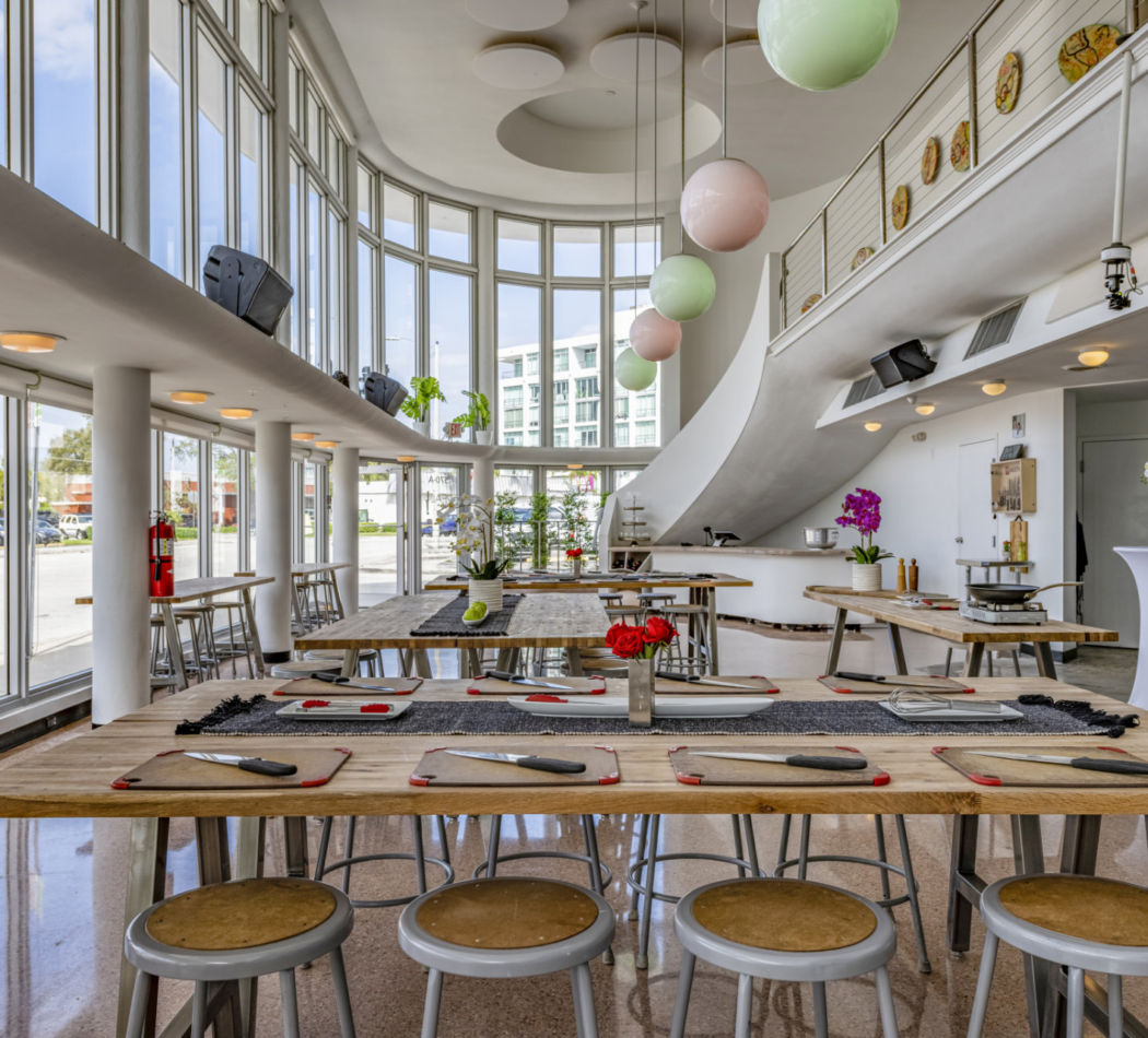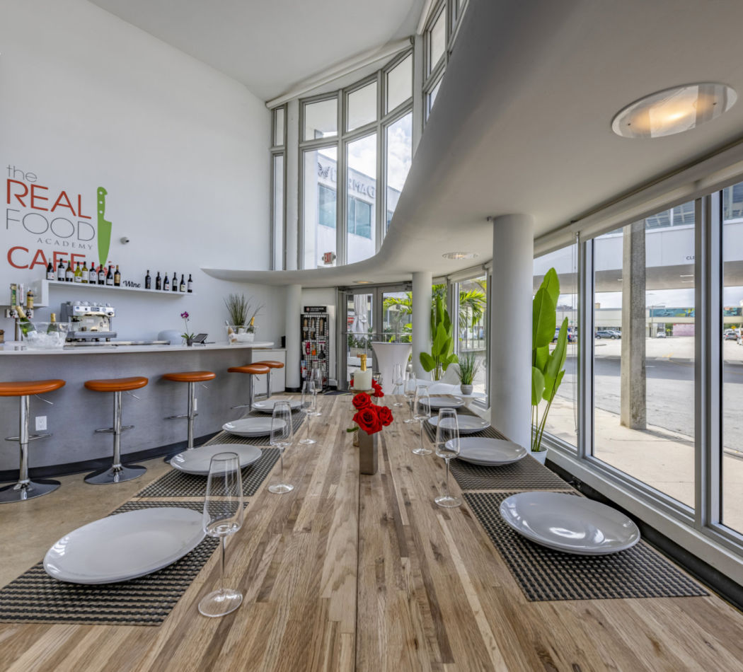 This virtual tour of The Real Food Academy showcases a stunning cooking academy, designed not only for children's classes and birthday parties but also for adult private parties, corporate events, or cooking classes. The space offers a bright and inviting ambiance with natural light pouring in, providing the perfect backdrop for any event. With multiple floors and ample seating in the lounge area, there is plenty of room for adults to relax and socialize while they wait for their turn to cook. The lounge area also doubles as an excellent space for hosting private events, where adult guests can unwind with a drink and enjoy the beautiful surroundings. Whether you're planning a corporate team-building event or a private party with friends, The Real Food Academy offers the perfect space to bring your culinary dreams to life.
