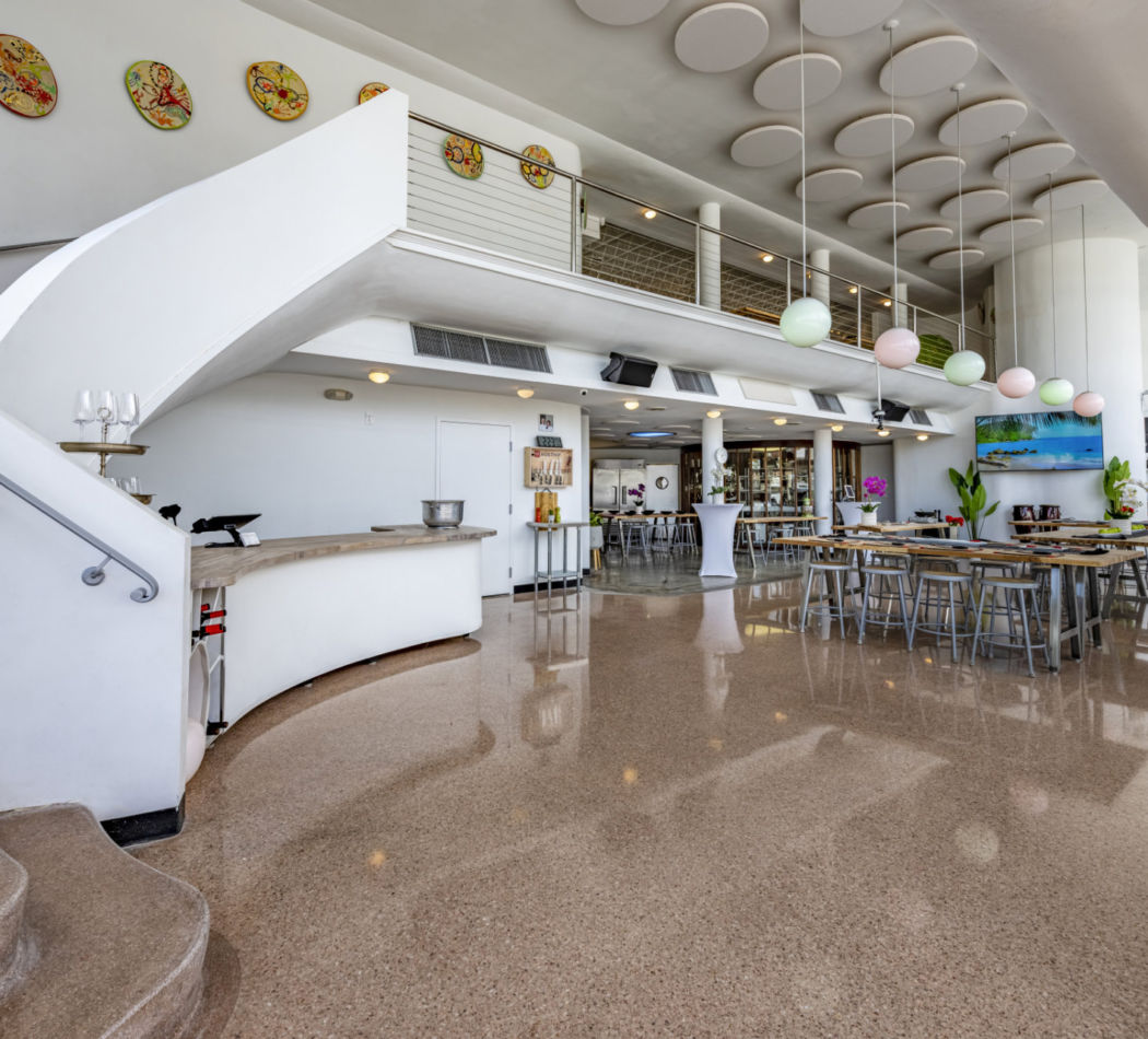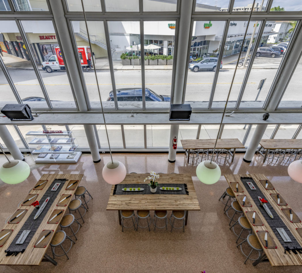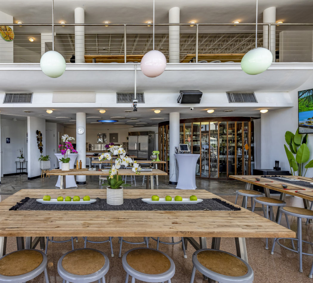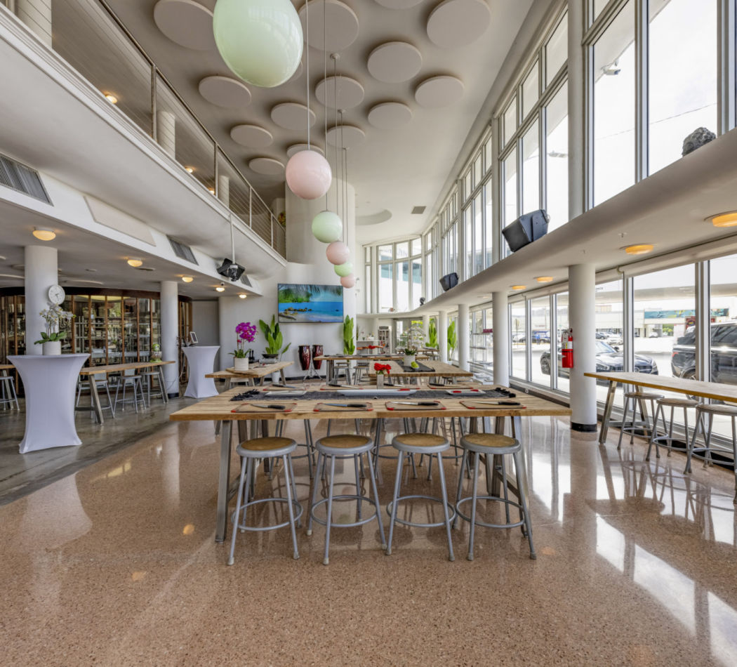 This virtual tour of The Real Food Academy showcases a stunning cooking academy, designed not only for children's classes and birthday parties but also for adult private parties, corporate events, or cooking classes. The space offers a bright and inviting ambiance with natural light pouring in, providing the perfect backdrop for any event. With multiple floors and ample seating in the lounge area, there is plenty of room for adults to relax and socialize while they wait for their turn to cook. The lounge area also doubles as an excellent space for hosting private events, where adult guests can unwind with a drink and enjoy the beautiful surroundings. Whether you're planning a corporate team-building event or a private party with friends, The Real Food Academy offers the perfect space to bring your culinary dreams to life.